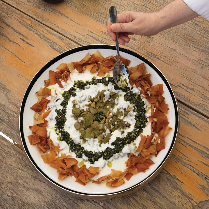 Anissa Helou: You have to stabilize the yogurt. It's absolutely essential. Yogurt will break if you let it boil very hard and if you don't stabilize it. Some people will stabilize it with cornstarch, and others will with egg. I like to do it with egg because I find that the texture is finer. You need to stir it all the time, and you need a medium-low heat. For me, you shouldn't let it boil too hard. Just bring it to a simmer and then add whatever you're cooking with it, and bring it back to that simmer, and then serve it.
