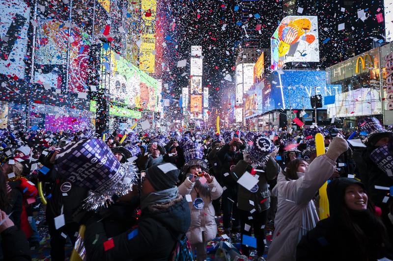 A view of the Times Square New Year's Eve 2026 celebration on January 01, 2026 in New York City.