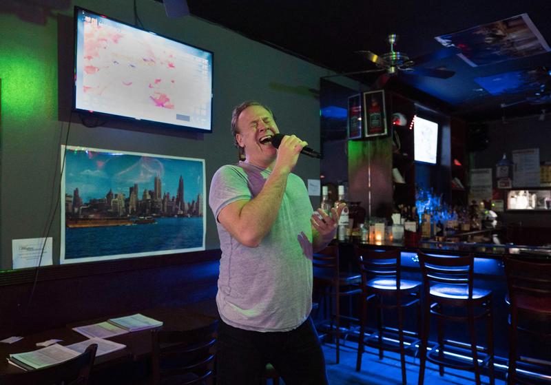Operatic baritone Lucas Meachem, who is performing in "La Boheme" at the Met, sings at a karaoke bar on March 8, 2018 in New York.