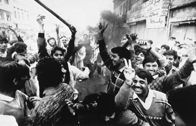 People in Rawalpindi, Pakistan, protest for a second day against the publication of Salman Rushdie's book "The Satanic Verses", Feb. 26, 1989.