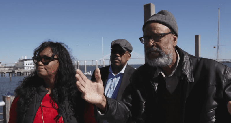 Tamara Lanier, left, tours a port in Charlston, South Carolina, where her ancestor Renty, who was born in the Congo, may have first disembarked from a slave ship onto American soil.