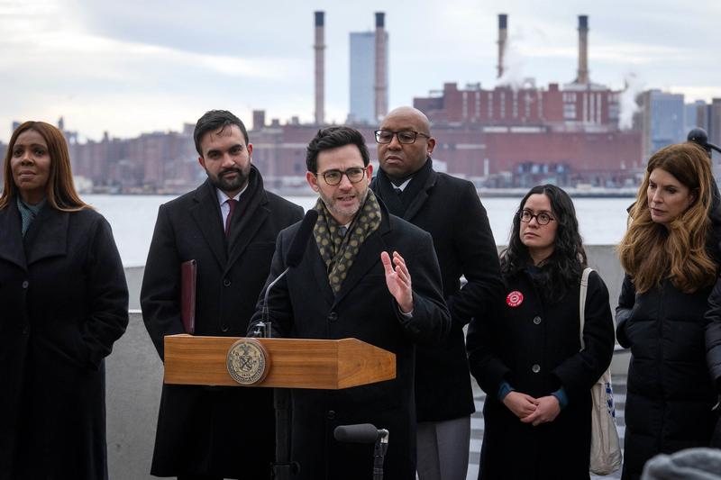 Mayor Zohran Mamdani, joined by Attorney General Letitia James, City Council Member Julie Menin, and DCWP Commissioner Sam Levine at Hunter's Point South Park Outdoor Gym, Long Island City. 1/5/26.