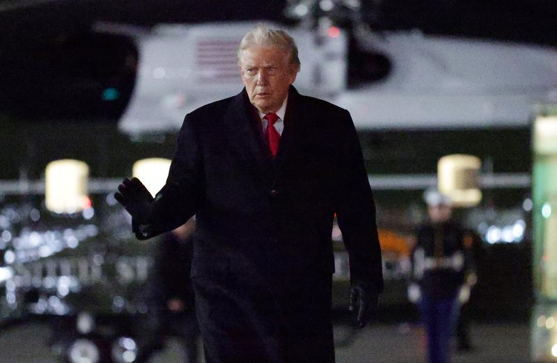 President Donald Trump exits Marine One before boarding Air Force One at Wilkes-Barre Scranton International Airport enroute back to Washington DC on December 9, 2025 in Avoca, Pennsylvania.