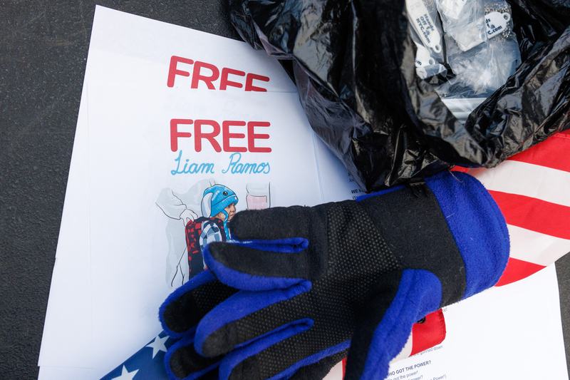 Paper signs for Liam Conejo Ramos, a 5-year-old who was taken into custody with his father by Immigration and Customs Enforcement (ICE) agents in Minnesota, in New York City, New York, on 1/23/25.