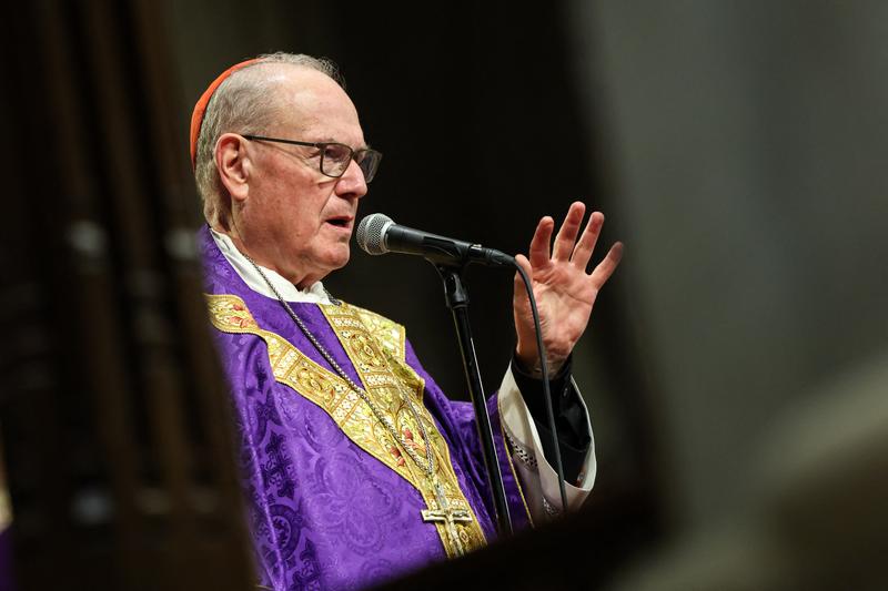 Cardinal Timothy Dolan speaks after mass at St. Patrick's Cathedral in the Manhattan borough of New York City on December 18, 2025.