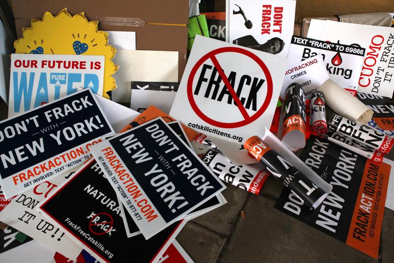 Anti-fracking sign at the final of four public hearings in New York city on the controversial practice known as hydraulic fracturing.