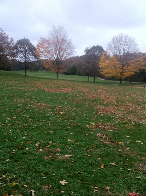 A windy Prospect Park blanketed with leaves Sunday afternoon.
