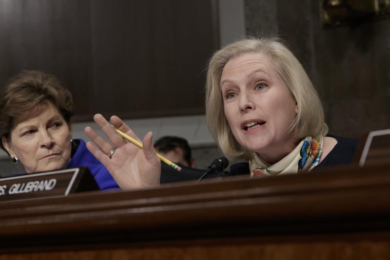 Sen. Kirsten Gillibrand questions Marine Gen. Robert B. Neller, the commandant of the Marine Corps, at a Senate Armed Services Committee hearing.
