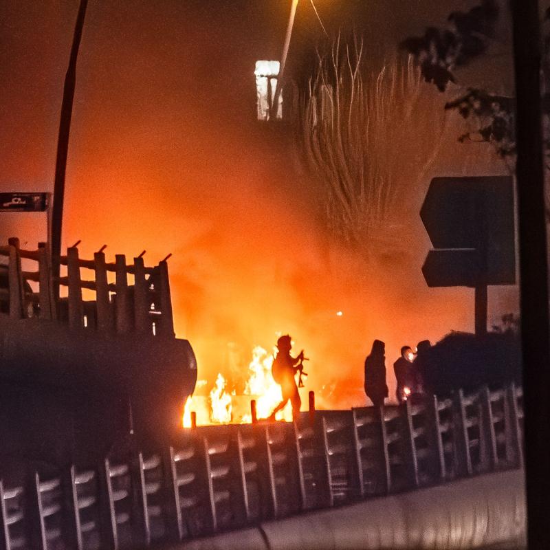 News clip: Crowds cheering around this bonfire, dancing around the flames, chanting down with the dictator, blasting the regime over Iran's failing economy and soaring inflation.